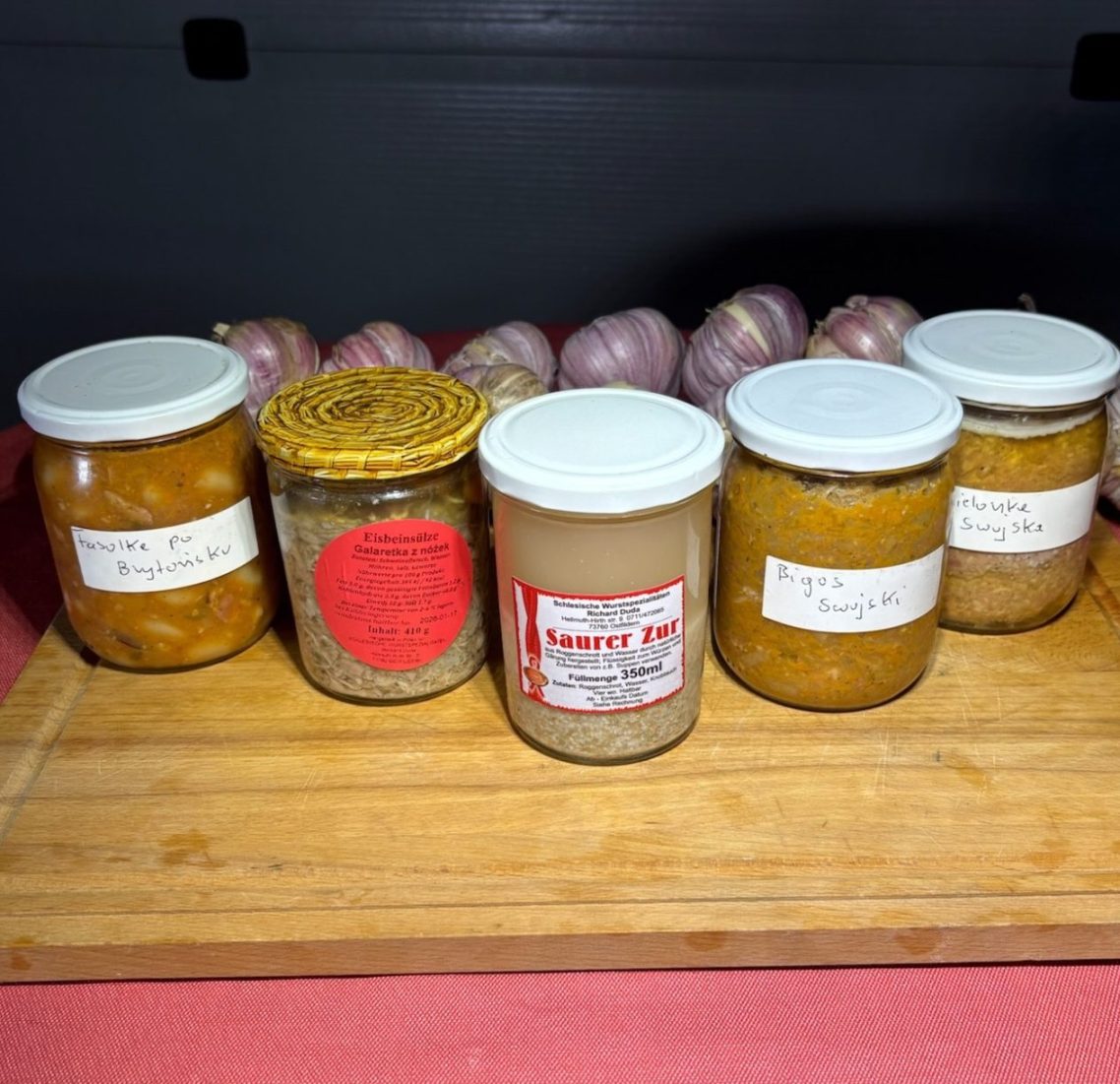 Unsere hausgemachten Spezialitäten entstehen aus ausgewählten Zutaten und nach traditionellen Hausrezepten. Sie bieten authentischen Geschmack, der perfekt unser Angebot an schlesischen Wurstwaren ergänzt.